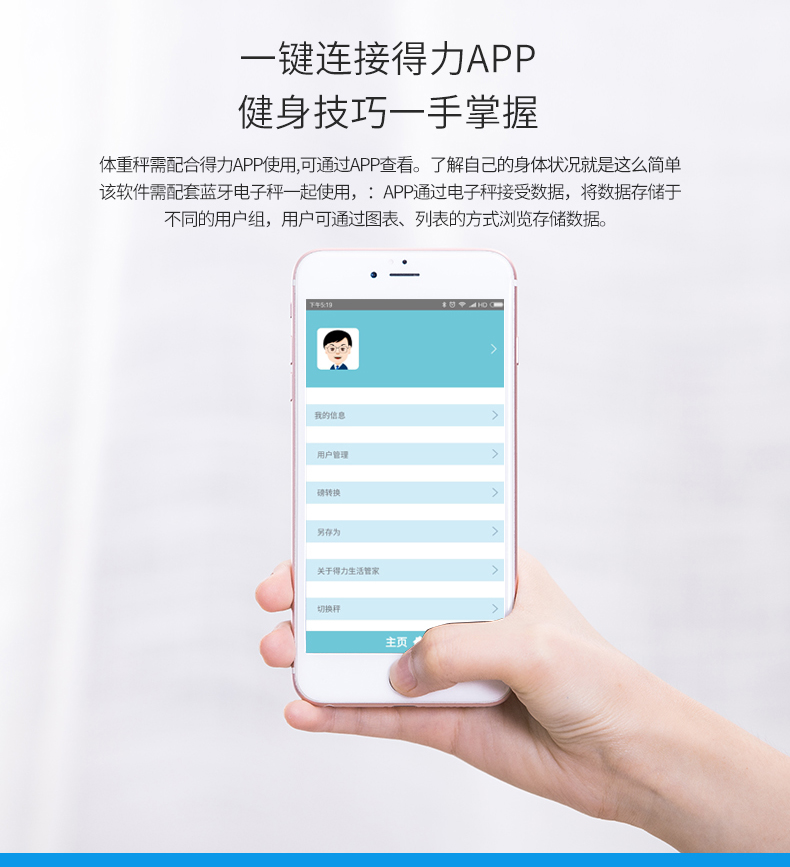 - 商品名称:得力(deli) APP智能体脂秤称体重秤家用测电子秤 手机连接数据分析 白色 8806