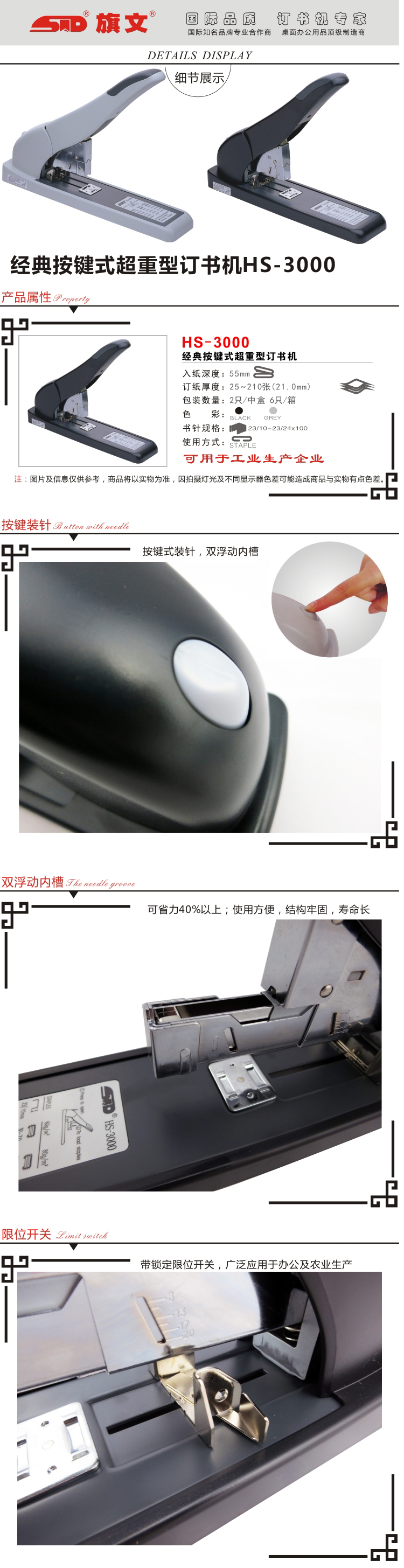 商品展示 > 订书机/起钉器 > 旗文(STD) HS-3000 重型订书机 订210页 可用2310、2313、2315、2317、2320、2324钉